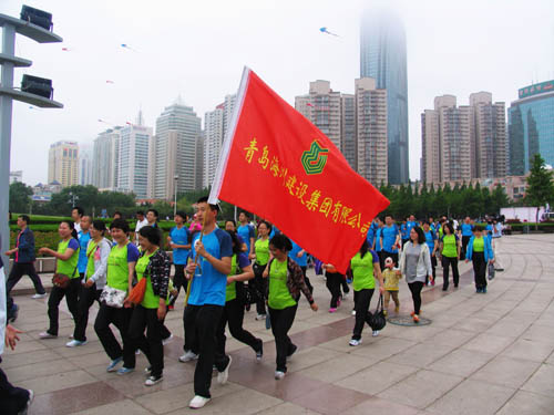 所有參與人員在五四廣場五月風(fēng)下集合?;顒娱_始前,集團(tuán)領(lǐng)導(dǎo)發(fā)表了講話,隨后大家從五四廣場出發(fā),沿木棧道向西步行,在第二海水浴場處領(lǐng)取中點牌后,經(jīng)東海飯店,由武昌路到達(dá)集團(tuán)總部(終點),全程約5公里。在海川大旗的帶領(lǐng)下,大約一小時左右全部到達(dá)終點,并領(lǐng)取了獎品。