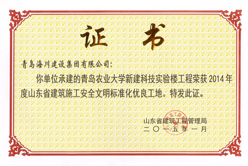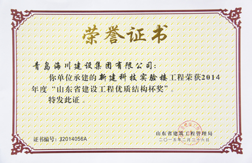 最近,七分公司青島農(nóng)業(yè)大學(xué)新建科技實(shí)驗(yàn)樓工程先后從山東省建筑工程管理局捧回了分別于2015年一月和二月頒發(fā)的兩項(xiàng)省級榮譽(yù)證書——榮獲“2014年度山東省建筑施工安全文明標(biāo)準(zhǔn)化優(yōu)良工地”和榮獲“2014年度山東省優(yōu)質(zhì)結(jié)構(gòu)杯獎(jiǎng)”。消息傳到工地,大家歡欣鼓舞,一年多的努力終于結(jié)出了豐碩的成果。