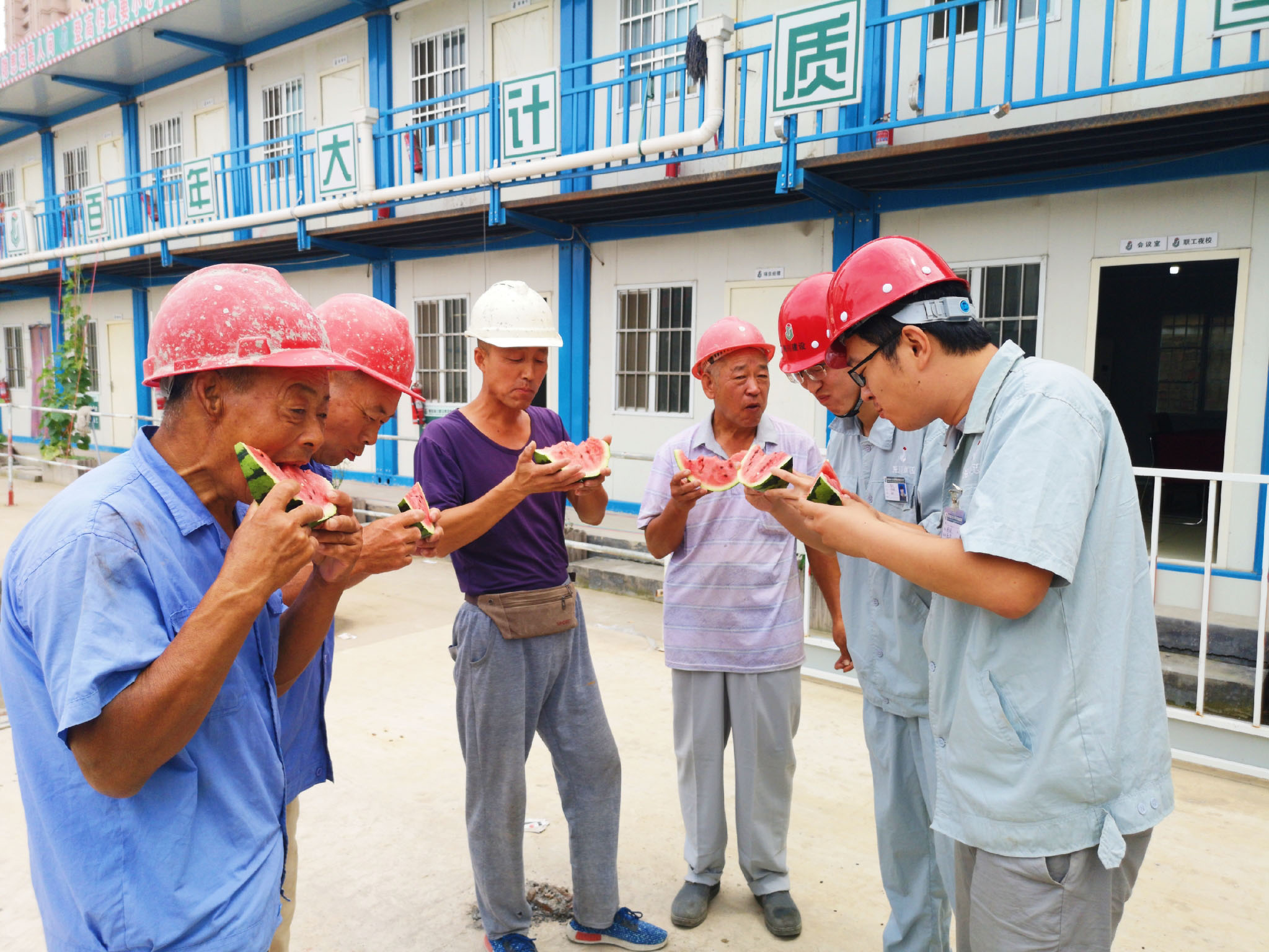 7月9日集團(tuán)工會走進(jìn)長沙路人才公寓項(xiàng)目部、北澗社區(qū)安置區(qū)項(xiàng)目部、富爾瑪項(xiàng)目部、鎮(zhèn)江路12號片區(qū)項(xiàng)目部,為一線工人送去海川農(nóng)林生態(tài)園的西瓜、桃子等等解暑降溫慰問品。