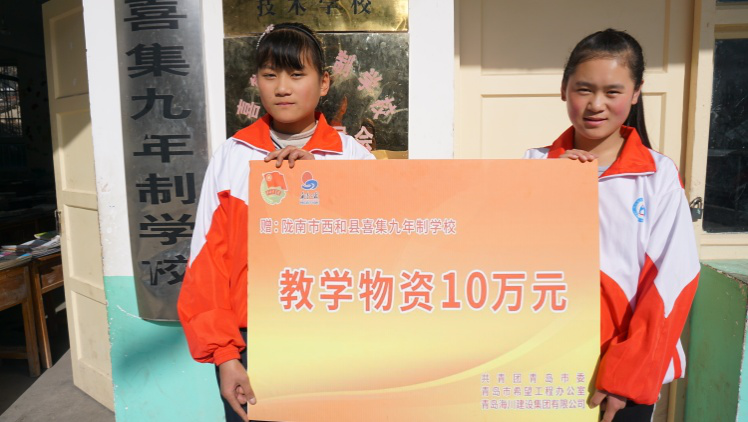 2017 改善甘肅喜集九年制學(xué)校辦學(xué)條件,捐贈教學(xué)物資10萬元