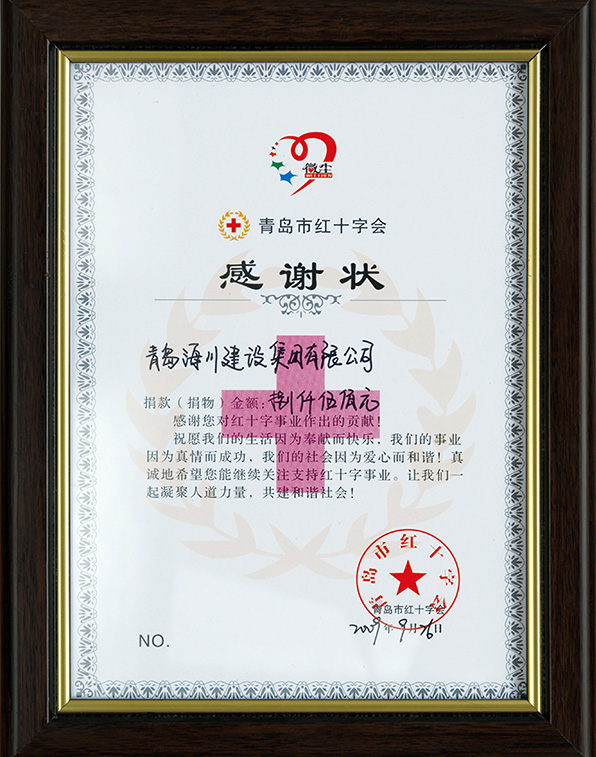 紅十字會(huì)感謝狀